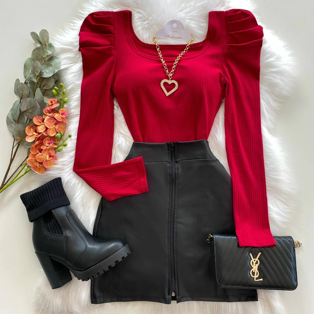 Body princesa canelado manga longa
