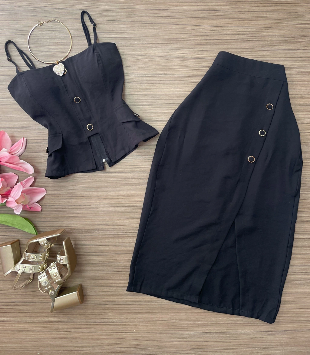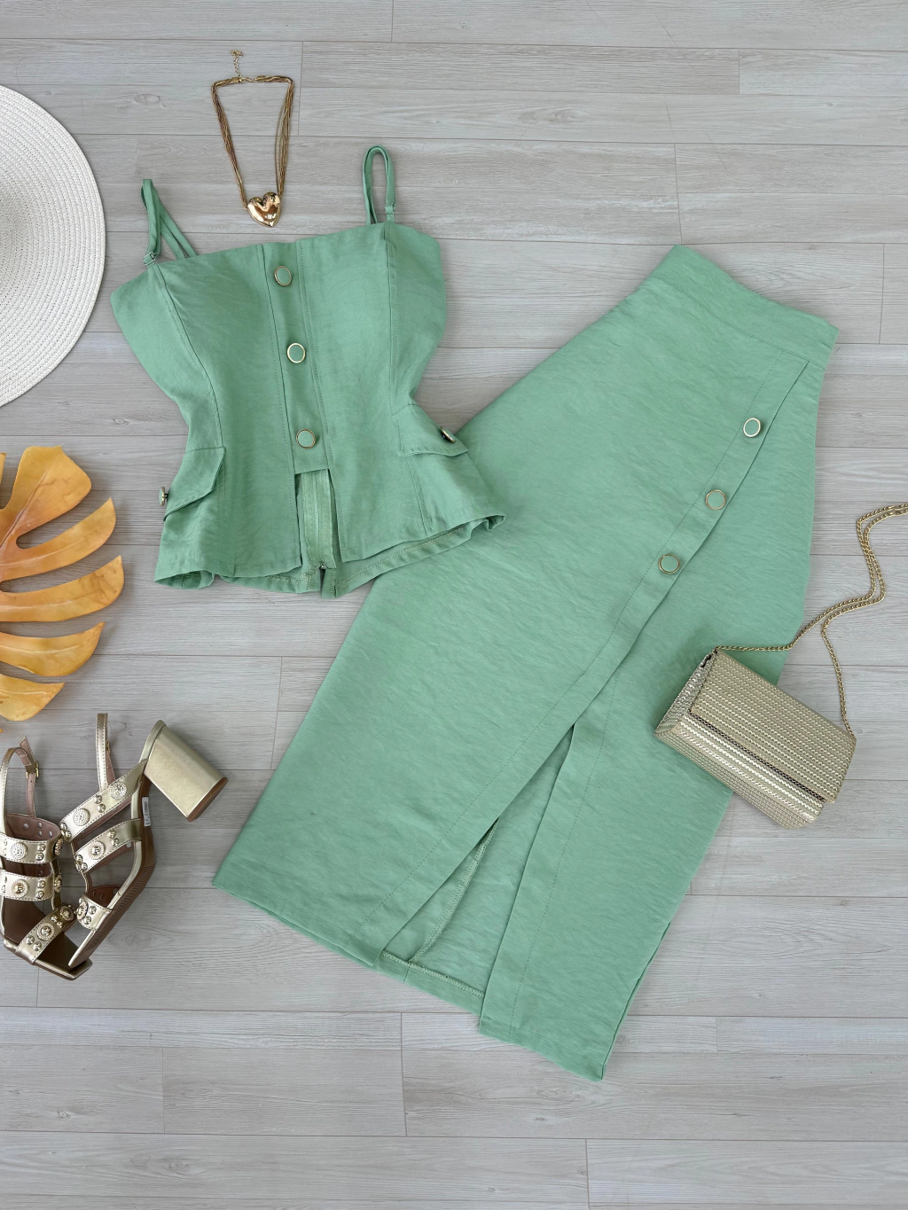 Calça courino wide leg