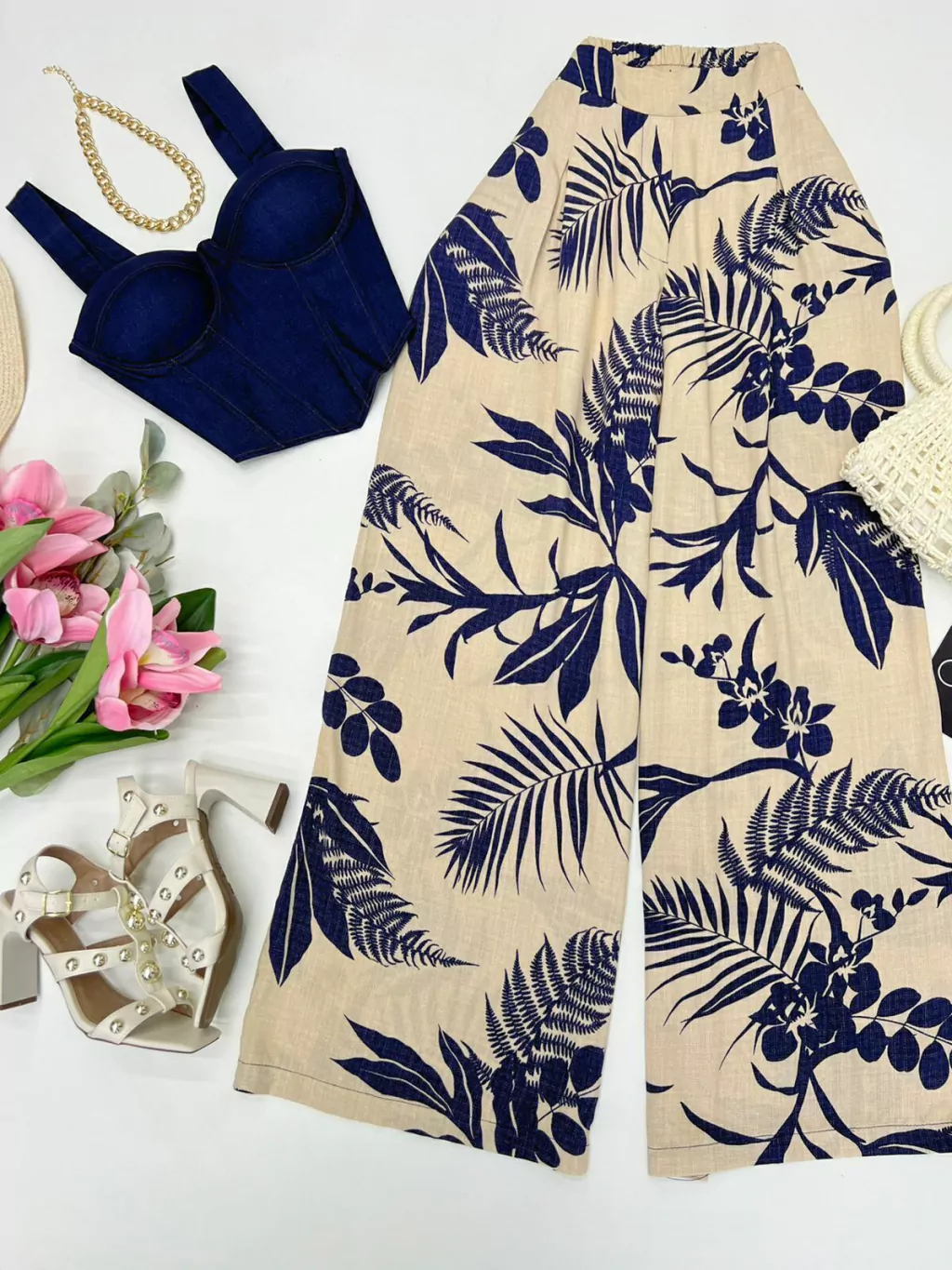 Calça courino wide leg
