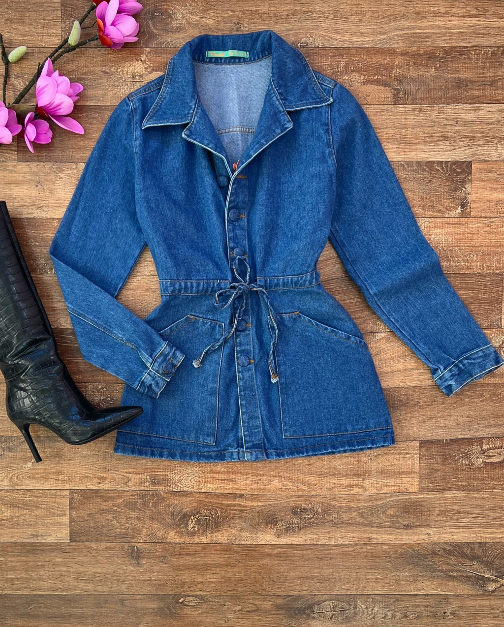Parka jeans Modelo ajustável na cintura P veste 36/38 M veste 38/40 G veste 40/42