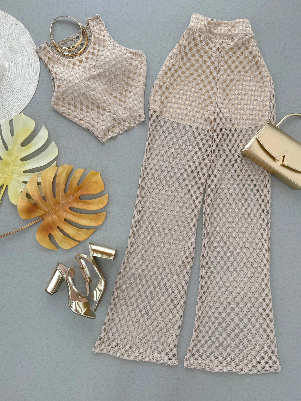 A cor é um creme suave, que evoca uma vibe praiana, ideal para dias na areia ou passeios à beira-mar.